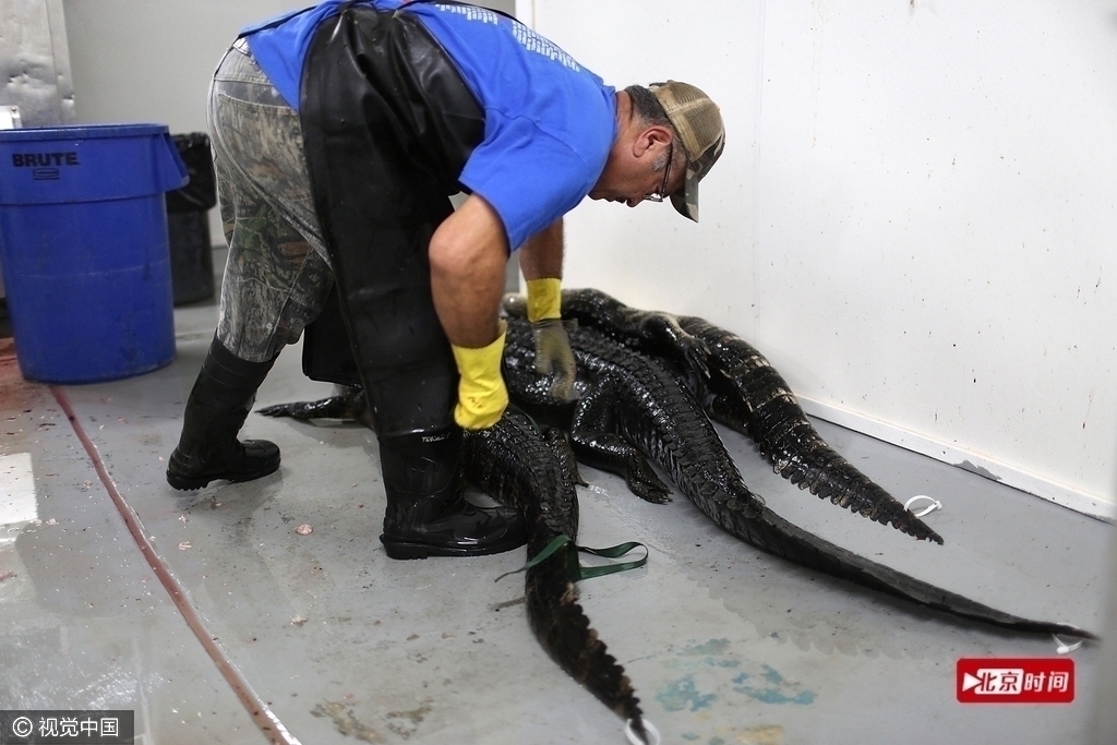 圖為當地時間2015年5月7日,美國佛羅里達州阿卡迪亞,探訪All American Gator美國短吻鱷公司。當時的調查顯示鱷魚肉價格已經翻了一番,從6至7美元每磅漲到了12至15美元每磅。