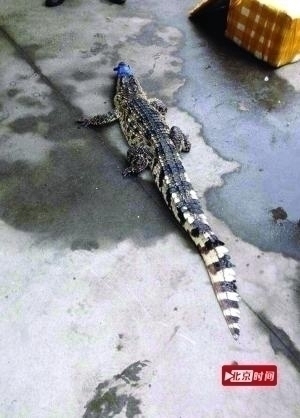 圖為即將被宰殺的可食用鱷魚。