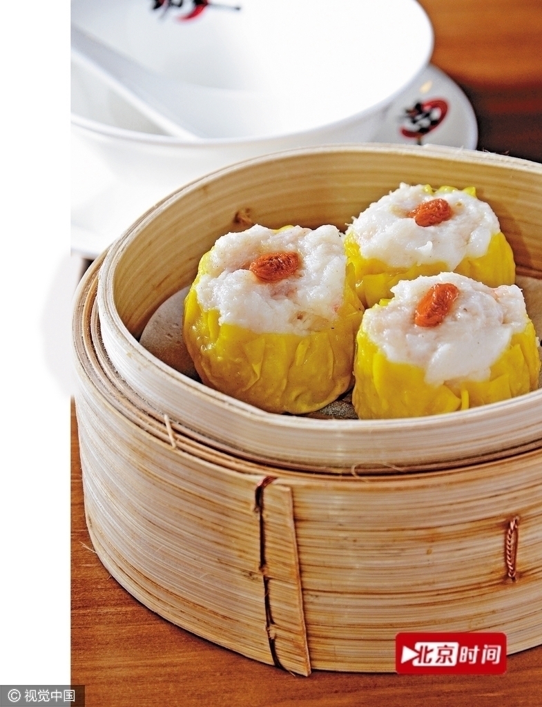 圖為香港尖沙咀售賣的海龍王燒賣,以蝦膠、蝦肉和鱷魚肉製成,嚼勁十足,別有風味。
