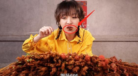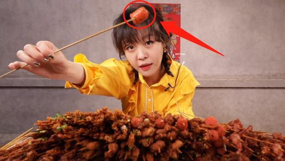 可惜這樣的進度沒保持多久就被一些網友的找出“問題”了,在吃到一半的時候大家的關注點落到了手中的串串上,可以清楚看到每一根串串上面都是只有一口的量,就手中的烤腸而言,大家平時吃的都是一根完整的,而這上面只有一小口,這區別不是一點大。